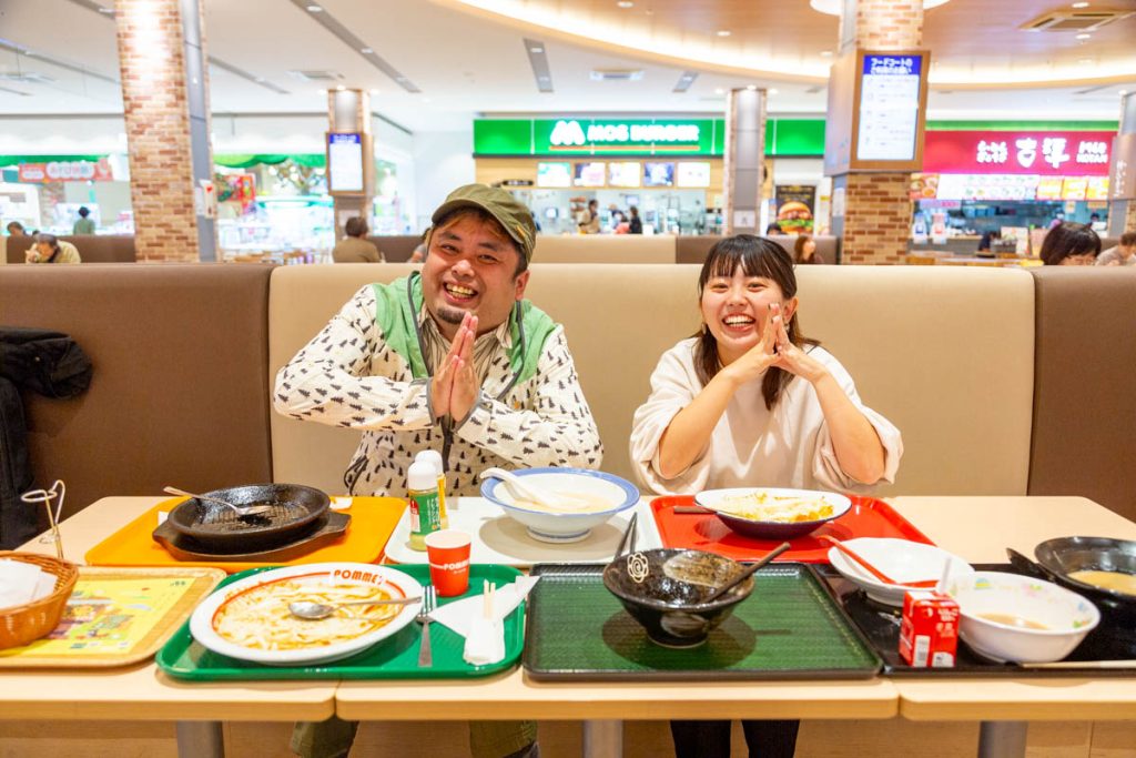今回はこの2人でフードコート&レストランの15店舗のグルメ食べ尽くしにチャレンジします!!