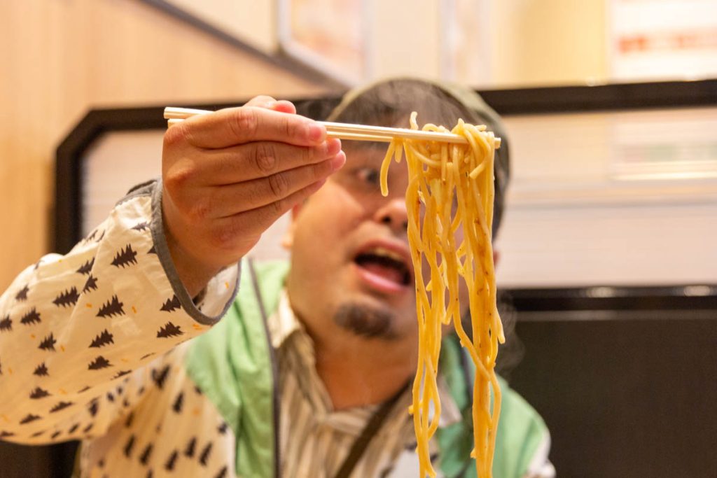 キターーー!!目の前のアツアツの鉄板からズルっと食べる焼きそば!!