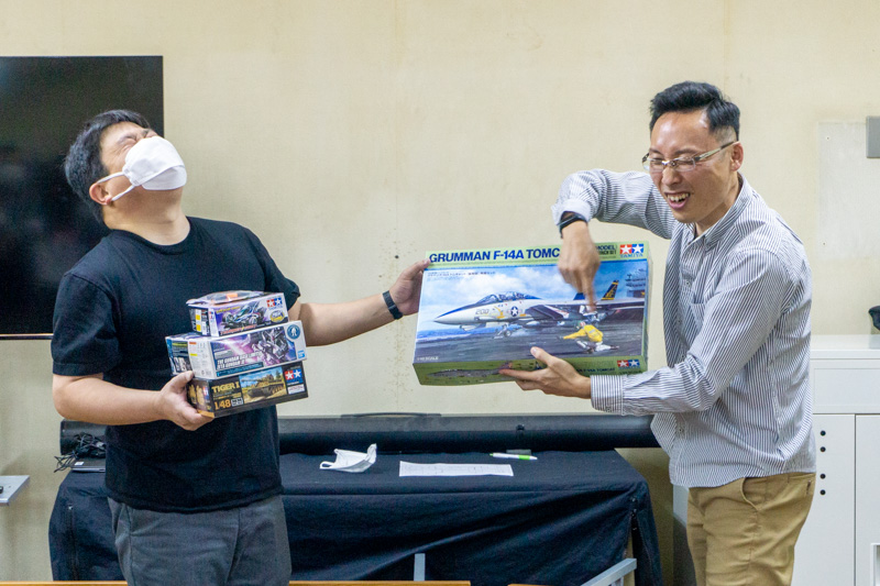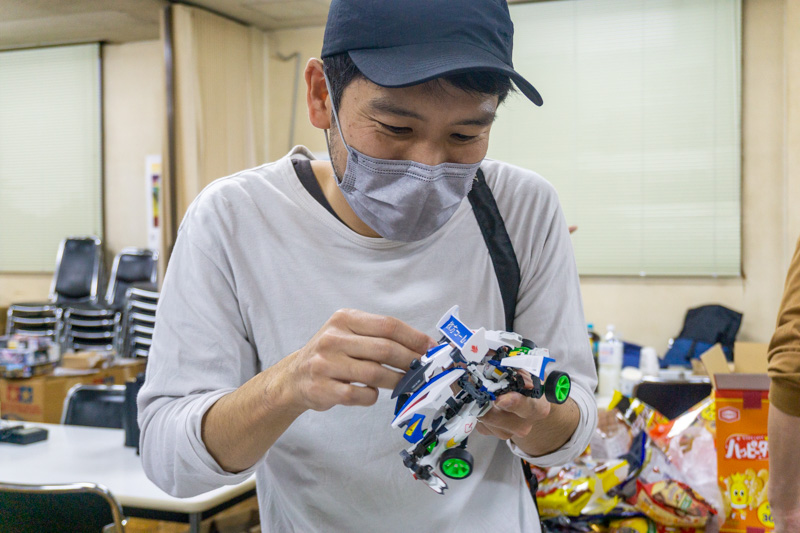 もらった賞品をみんなの前でお披露目するのも、恒例イベントとなっています(笑)ミニ四駆やタミヤ製プラモデルの詰め合わせ!羨ましい〜〜!!