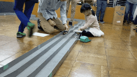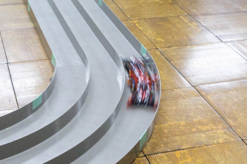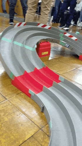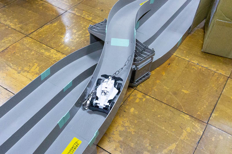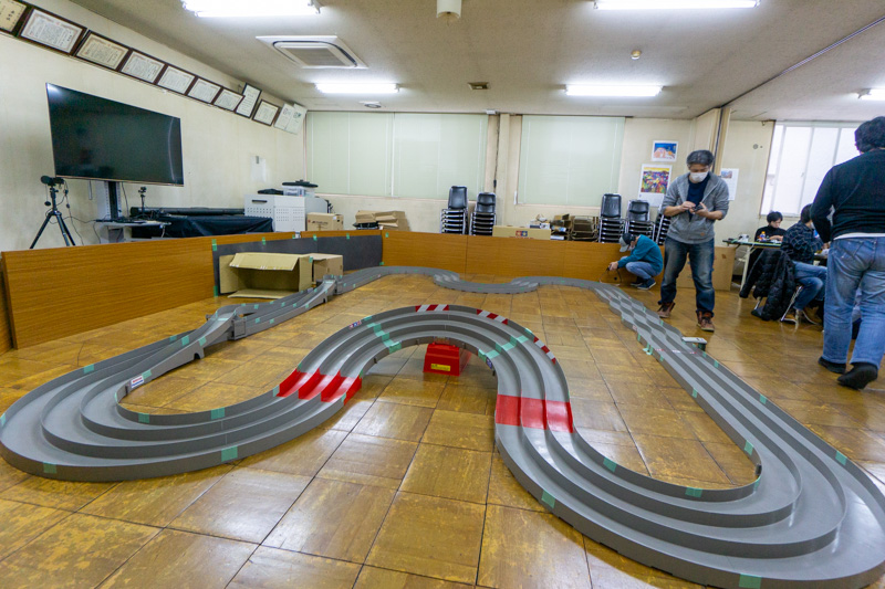 関係者のみのミニ四駆大会ですが、コースはめちゃくちゃ本格的です。ていうか…