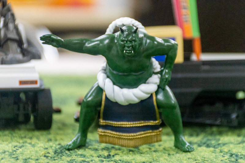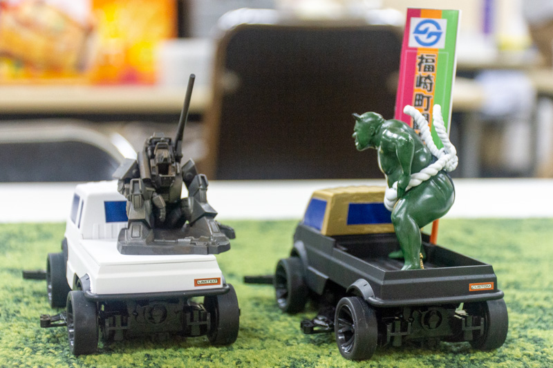 「なぜ鬼!?」と思って質問してみると、兵庫県の福崎町観光協会が販売しているプラモデルをゲットされたので乗せてみたそうです。ちなみに鬼には、細かな塗装が施されています。