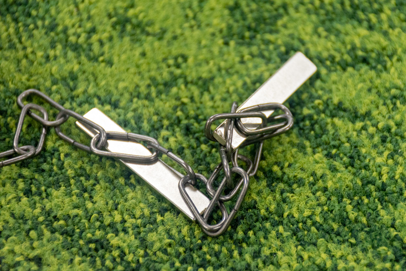 本体にはチェーンが装着されていて、その先にあるマグネットを対戦相手のマシンにくっつけることで平等に力を分け与え、一緒にゴールできるといった仕様。
