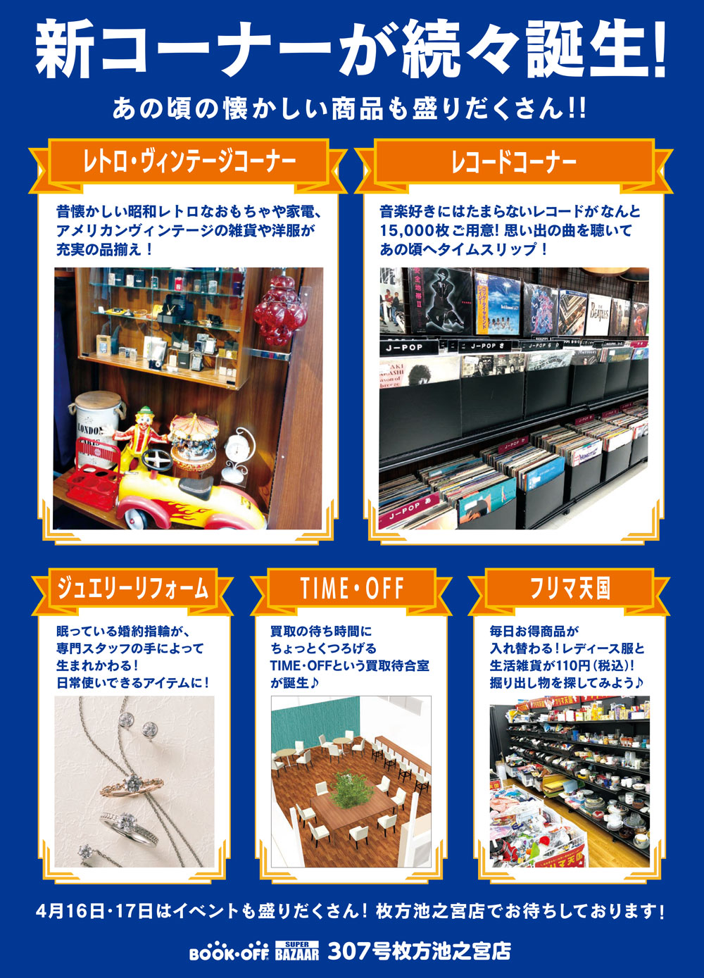 で、おなじみの池之宮にあるブックオフスーパーバザー307号枚方池之宮店が4/16(土)に6周年目のリニューアルオープン!