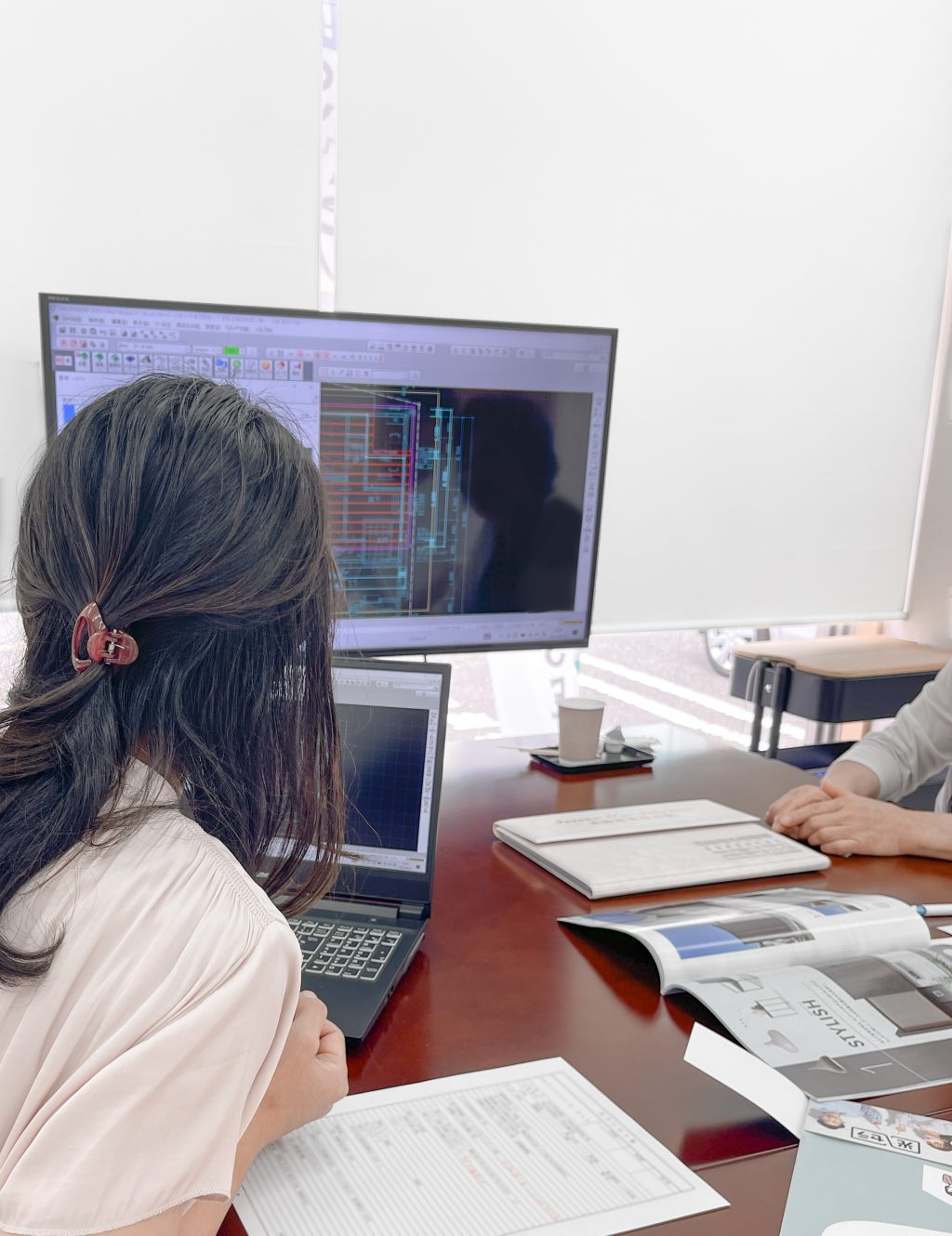 実際の図面やカタログなどを見ながら、お客様のご要望とすり合わせていきます。