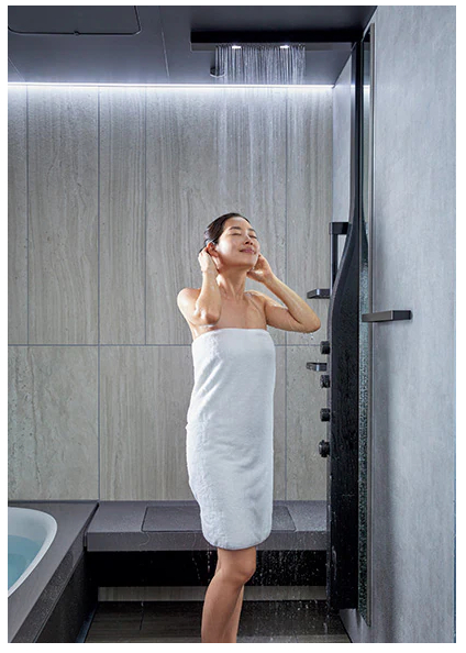 全身を包み込んでくれるようなボリューム感のあるお湯の広がりを実現していて、まるで、一流ホテルのバスルームに居るかのような気分に浸れますよ♡