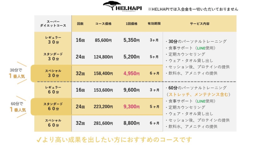 「逆に食事サポートがないコースもありますし、トレーニング時間も30分・60分と選べるので、ご自身の好みに合わせてプランを選んで頂けます」