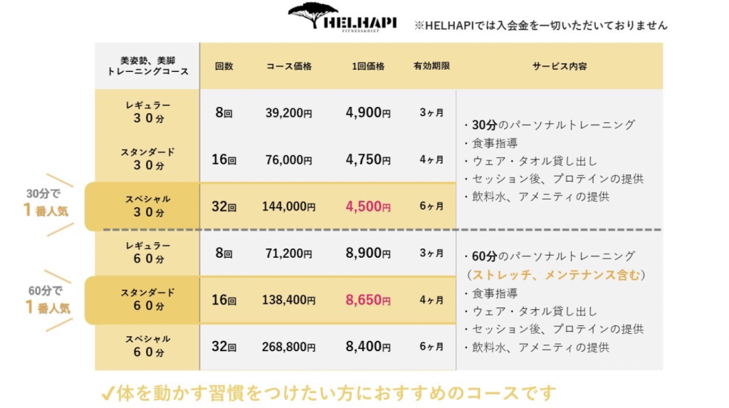 ちなみに今回は木野さんに担当して頂きましたが、ヘルハピでは女性のトレーナーも2名いらっしゃるそう!