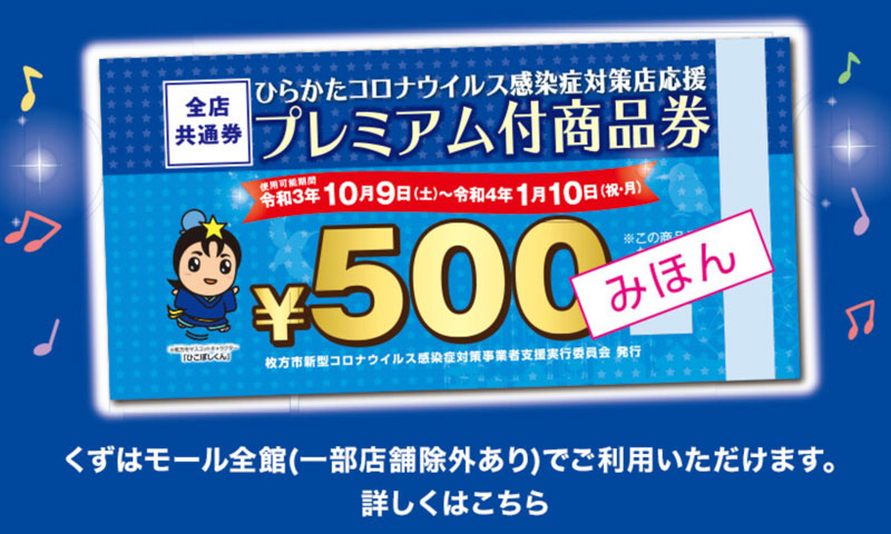 11/29(月)からは、枚方市プレミアム付商品券をご使用された方限定で、