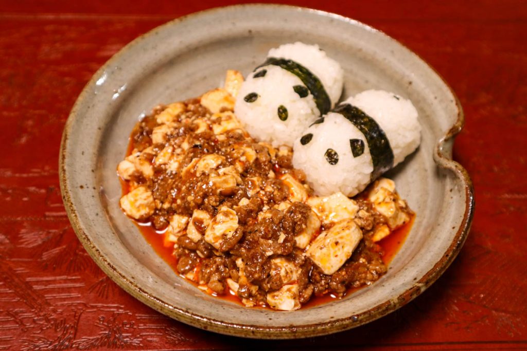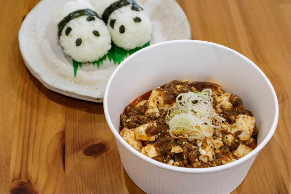 熊猫軒の麻婆豆腐と追い飯用のパンダおにぎり