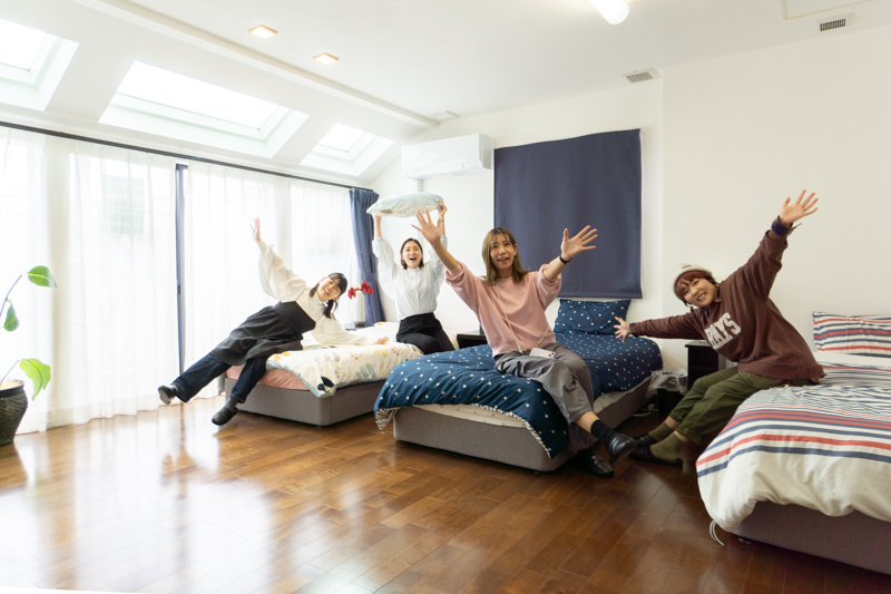 ベッド:シングルベッド×3台(3名)、二段ベッド×2台(4名)、布団×4組(和室用2名、ソファベッド用2名)