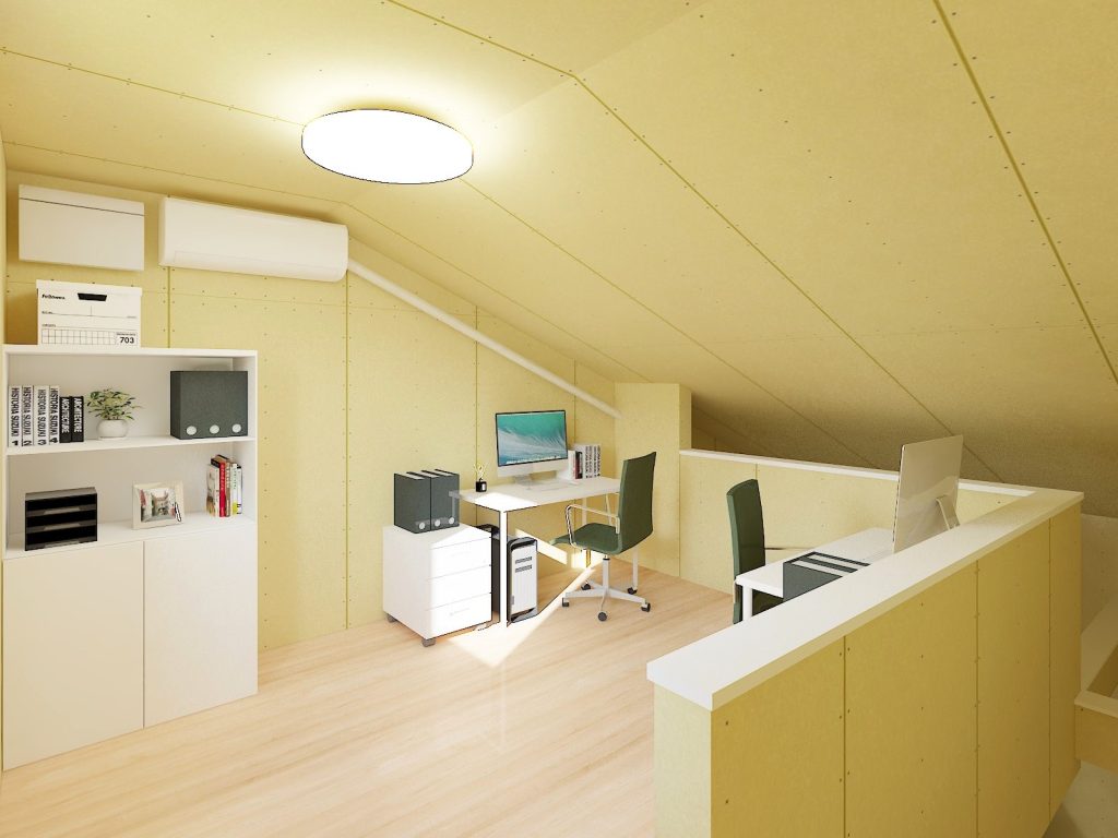 2階はオフィス・リモートワークスペースや趣味の空間、収納部屋としても使えるフリースペースになっています。