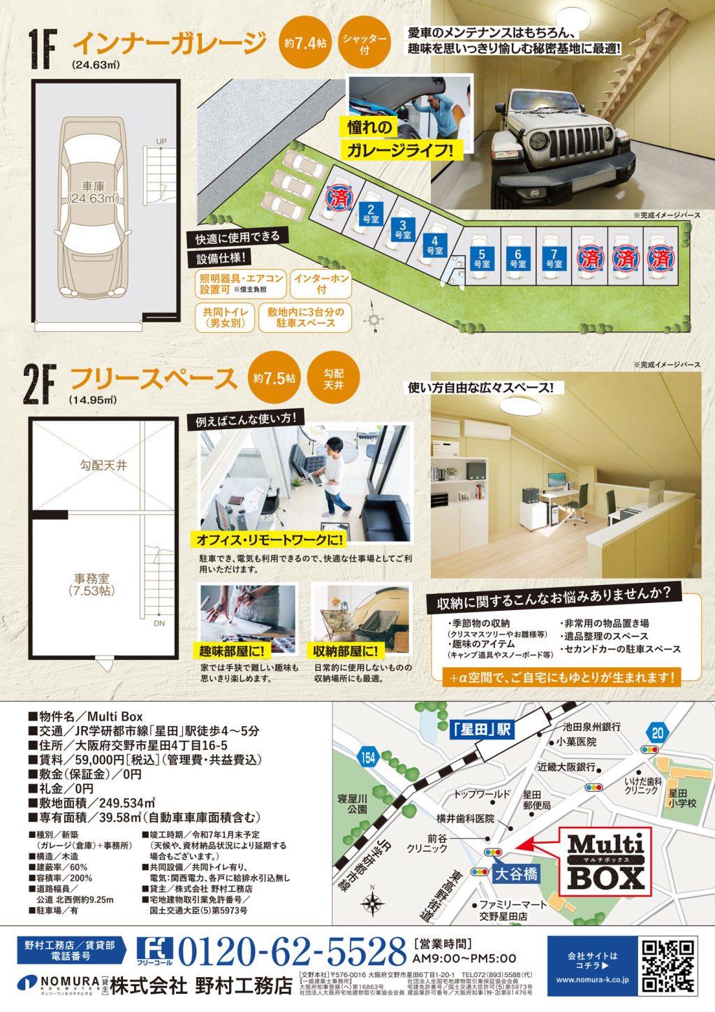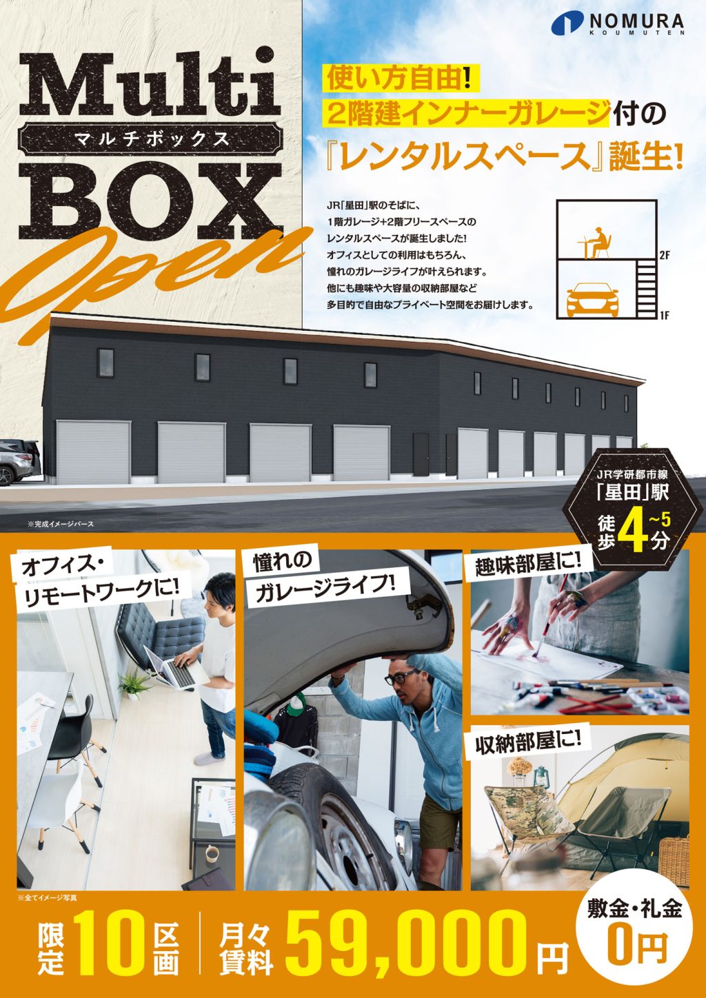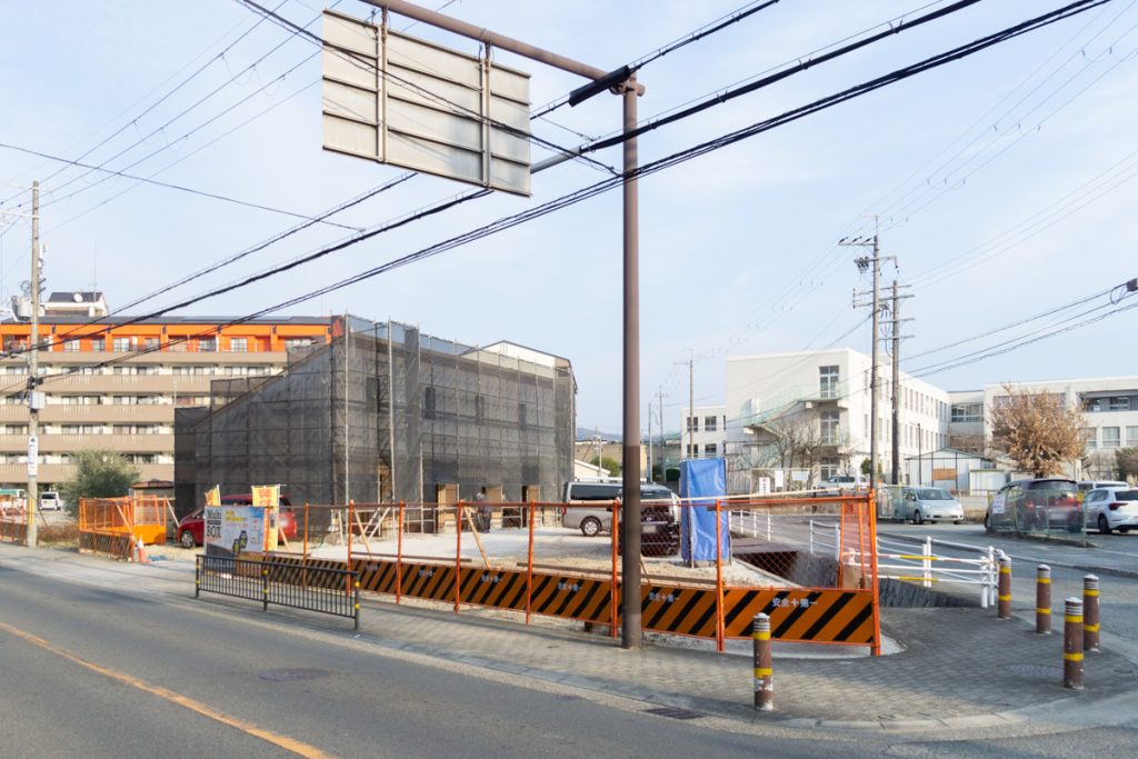 JR星田駅から歩いてすぐの大谷橋交差点のすぐ脇に新たに2階建てのインナーガレージ付きのレンタルスペースができます。