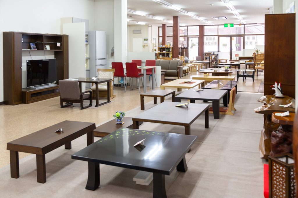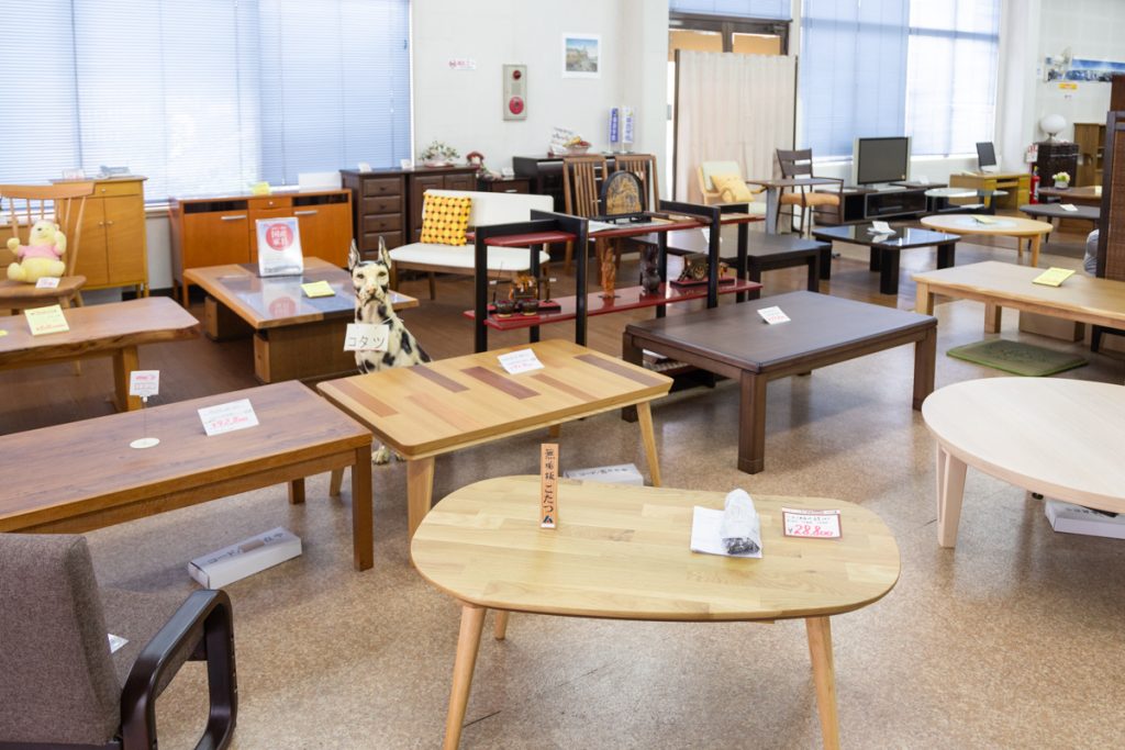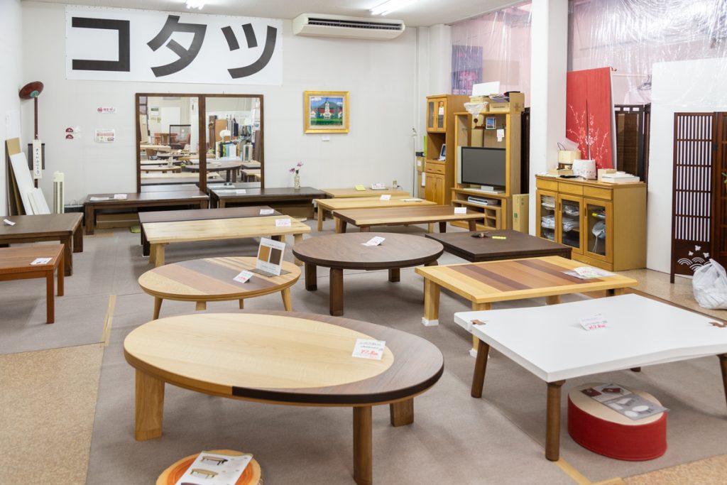 尾上家具はコタツと座卓に特化したお店で、その数はなんと常時200台展示!
