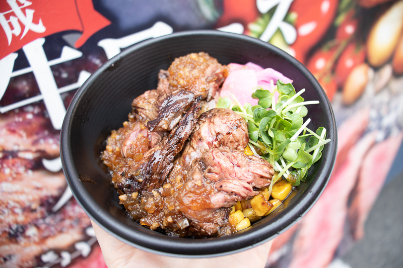 【左】「ステーキ WALT(バルト)」の牛ハラミステーキ丼/【右】「SWEETS STUDIO FIFTEEN」のスティックワッフル