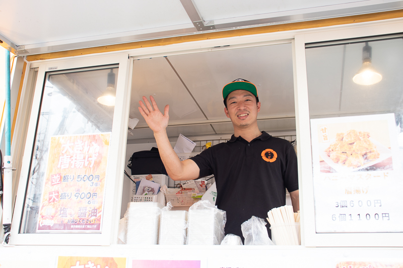 1個がめちゃくちゃ大きい唐揚げはサックサクでジューシー。何よりキッチンカーだから揚げたてが食べられる幸せ…。ありがとうありがとう。