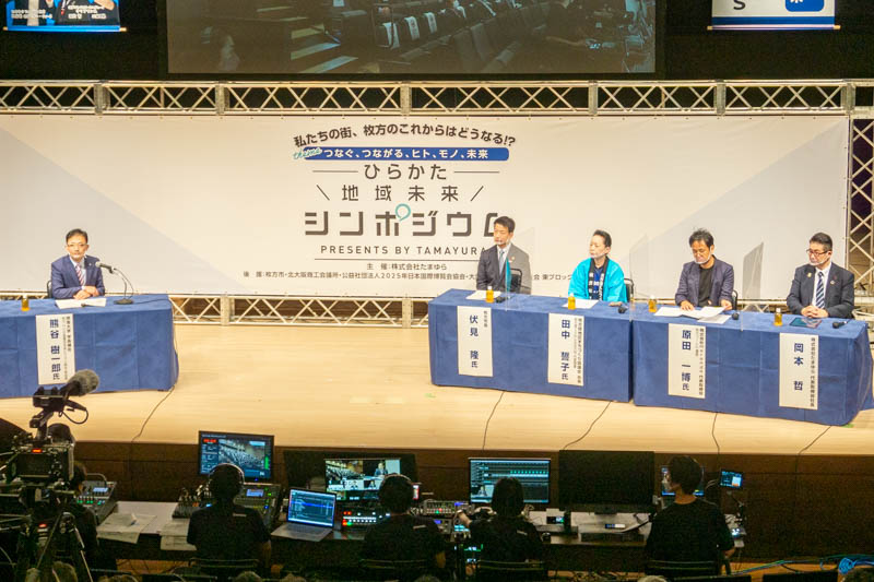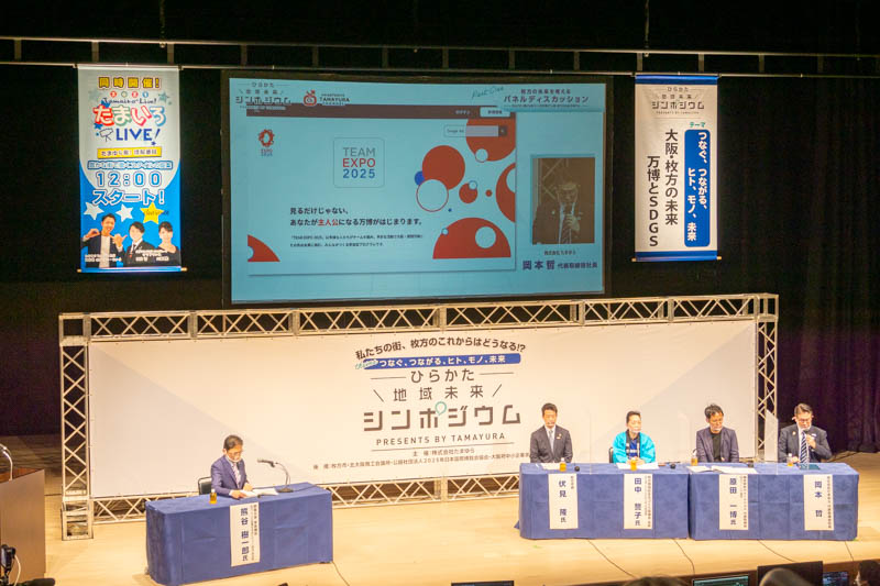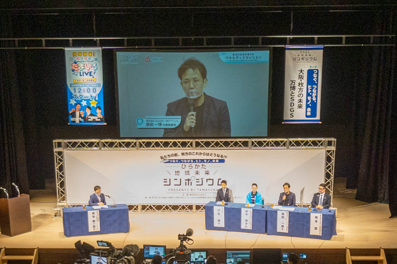 「つなぐ、つながる、ヒト、モノ、未来」をテーマに、伏見市長をはじめとしたパネリストによる枚方市の今後についてのディスカッションや、SDGs・万博・枚方の未来に向けた街づくりの講演会などが行われました。