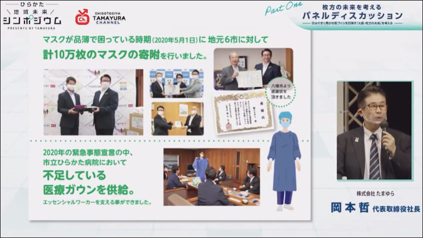 枚方に本社を置く「たまゆら」の地域活性化事業のひとつとして、『わがまち・枚方の良さとは、これから枚方はどうなるのか』を一緒に考える場となるよう、枚方の未来に焦点を当てた講演会や企業交流会が行われました。