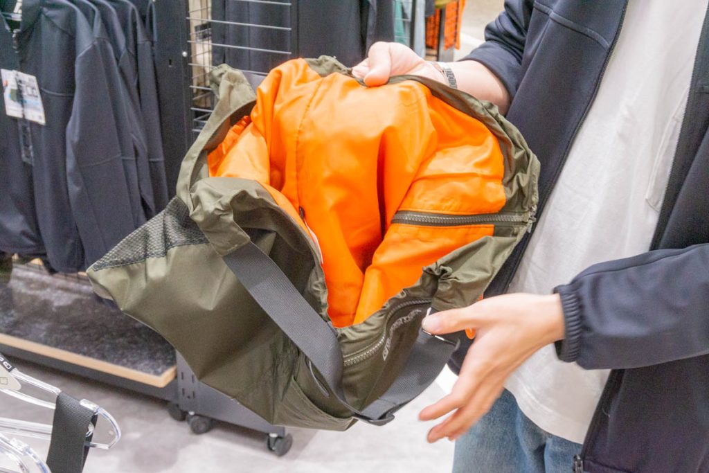 すごっ!この背中の部分がガバっと大きなポケットってことですか!?めっちゃ便利〜!!
