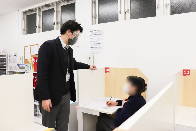 まずは自分で問題を解いてもらい、分からない所が出てきて初めて先生がサポートします。