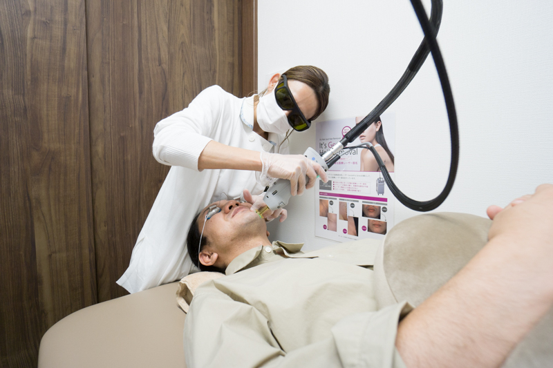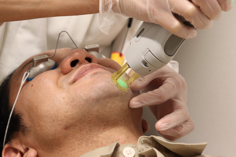 実際にレーザーを当てて肌に異常がないかを確認します。