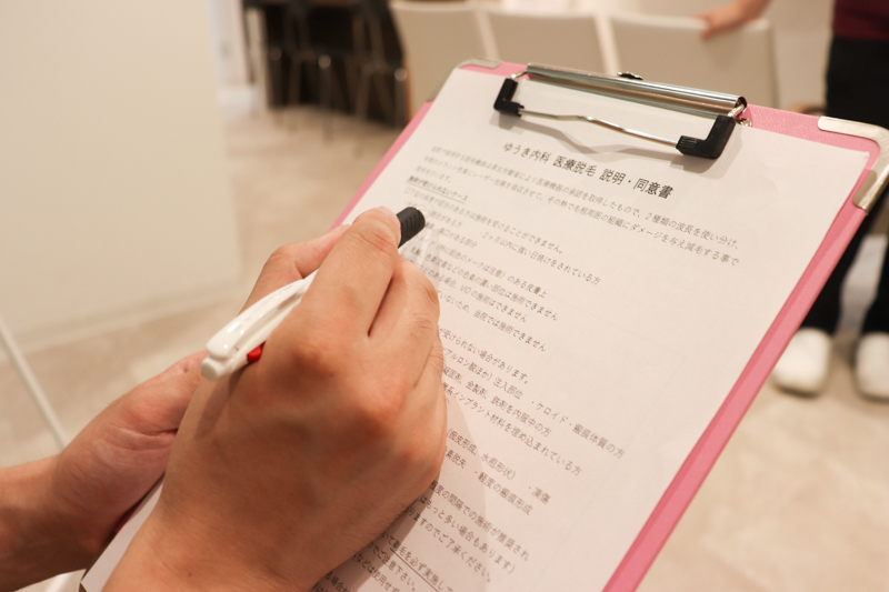 受付でカウンセリングシートをもらいその場で記入していきます。