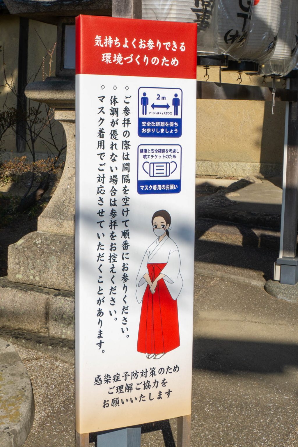 やはり、境内は感染症予防対策のため、様々な決まり事があるようでした。