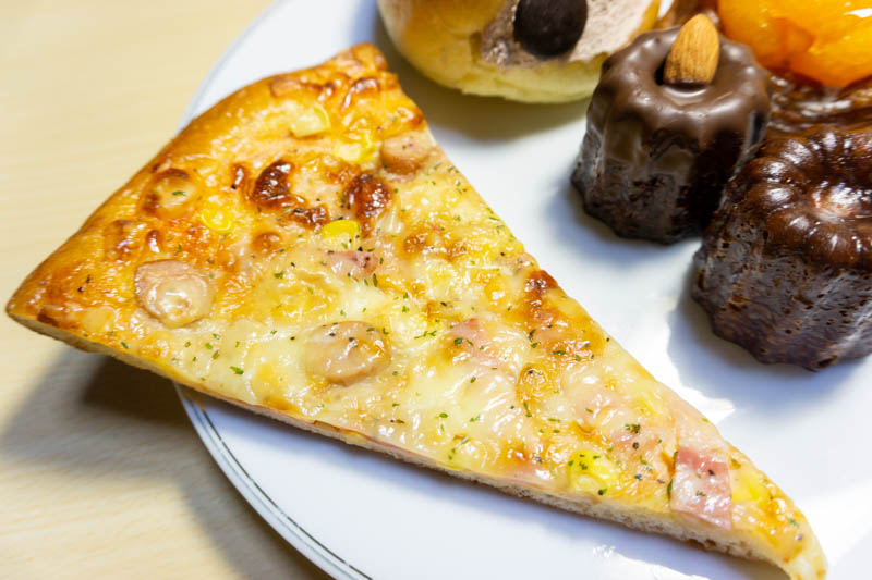 手前がみかんデニッシュ(259円)真ん中左がカヌレ(270円)真ん中がデコレーションカヌレ(291円)右がマリトッツォチョコ(324円)一番奥がピザ(216円)です。