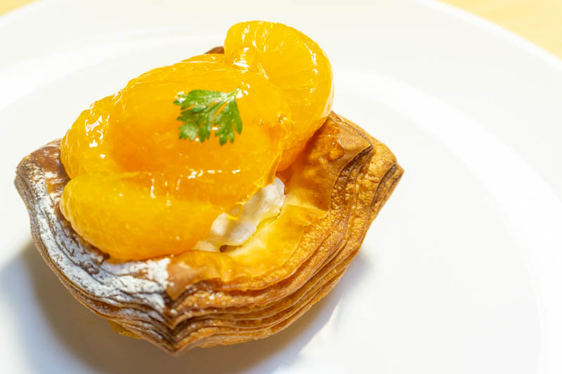 続いてこちらのみかんデニッシュ。店内でピカピカに輝いていたみかんがとっても美味しそうだったので購入。