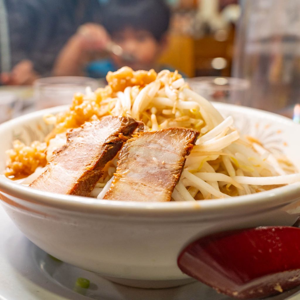 これはスープが乳化してるから、とかあるんでしょうか。牛乳入れてるって聞いてもウソじゃないって思っちゃいそうなくらいマイルドな二郎系で、パンチは抑えめですが「あぁ〜二郎〜〜」って感じはバッチリ。