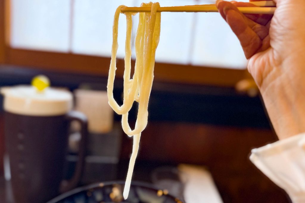 うどんの麺がめっちゃコシがあってーーーー、その上長ーーーーーい(画像が一本分です)