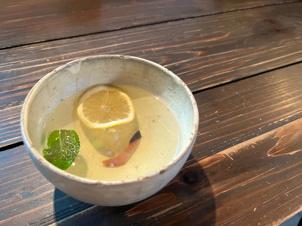 みかんとミントの葉、そしてなんと鰹節が入ってるんです。