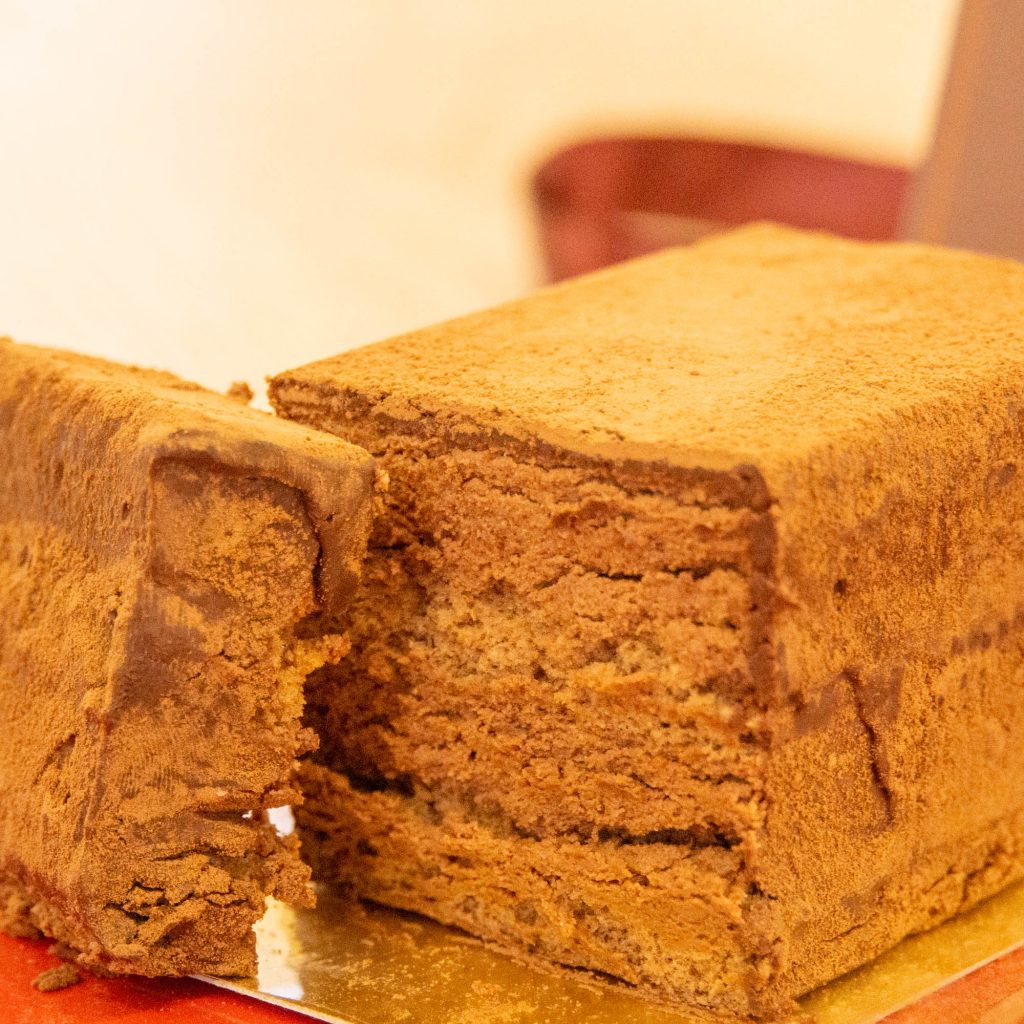 店頭にずらっと並ぶ生チョコレートケーキ。「ショコラクリュ。」