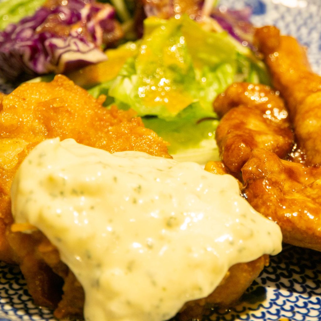 チキン南蛮は衣がカリッと。味も濃くご飯とめっちゃ合います。