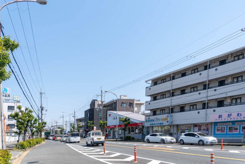 こっちにいくとENEOSがあり進んで行くと、牧野高校前のTSUTAYAなどがあります。