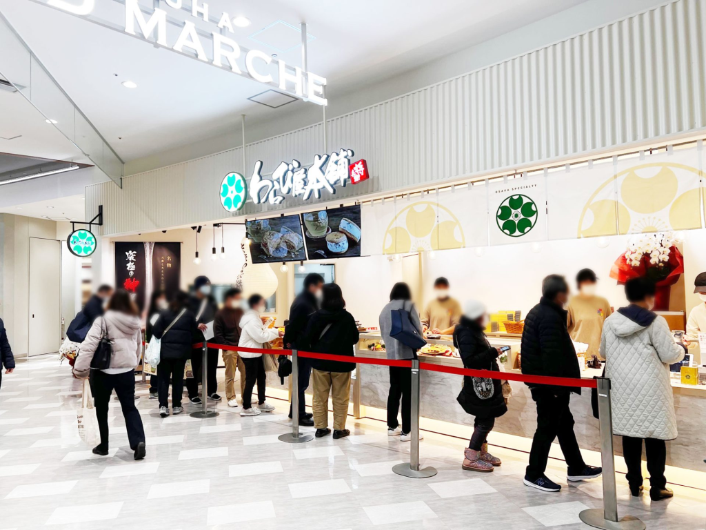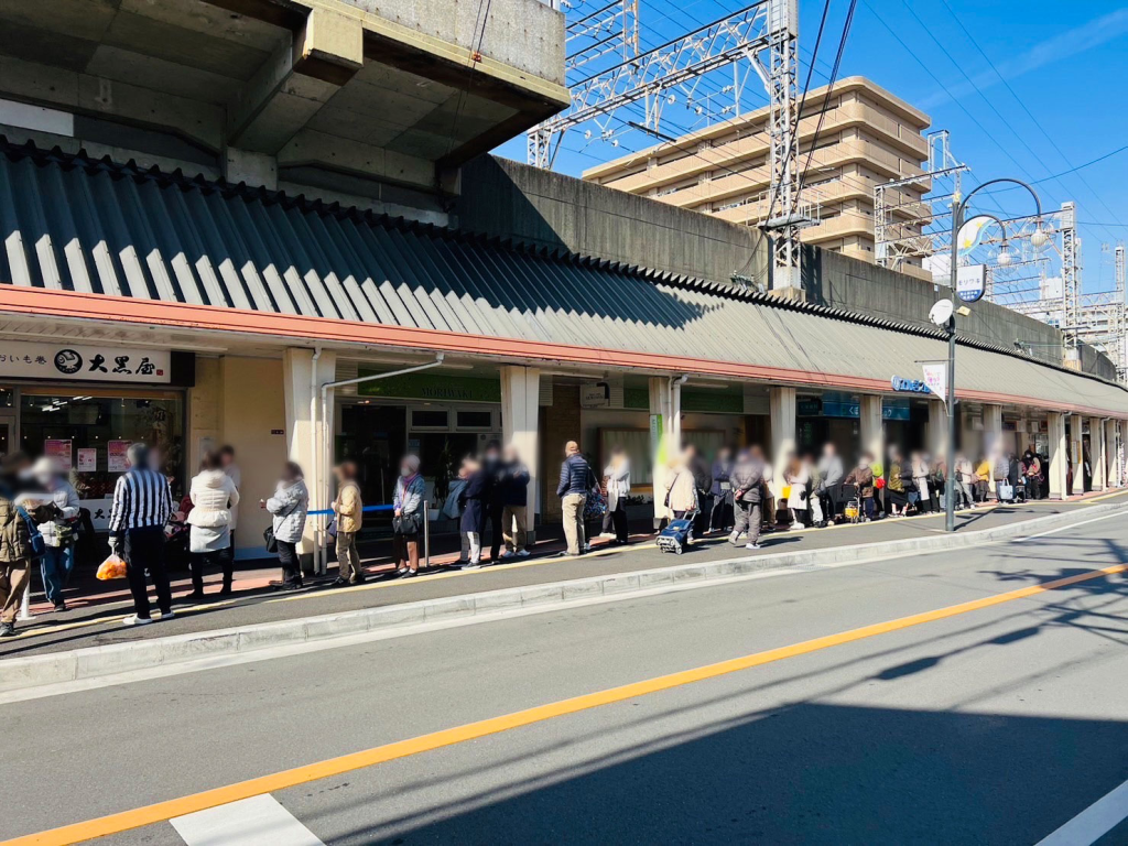 いつも列ができてる「御座候 枚方京阪店」。この日はかなり長い列がずーっとできていました!
