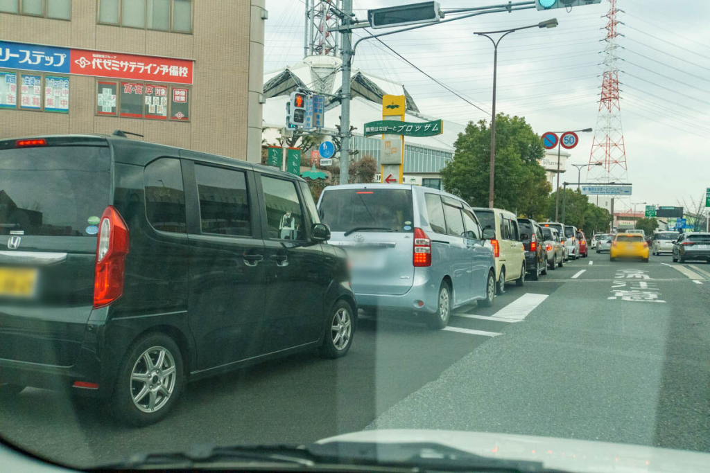 ブロッサム閉館のときの車の列(鶴見区茨田大宮)