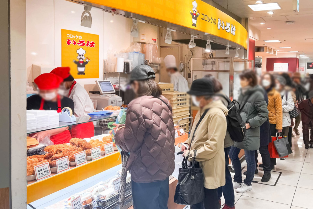 話題のコロッケ店の行列(京阪百貨店ひらかた店)
