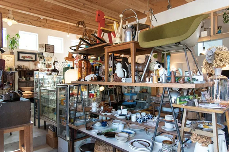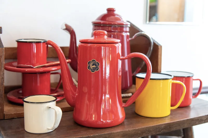 2018年に星丘にオープンした古道具とコーヒーのお店。1960〜80年代のジャパニーズモダンな古道具を販売する店内には、商品を眺めながらコーヒーを楽しめる小さな喫茶スペースが併設されています。