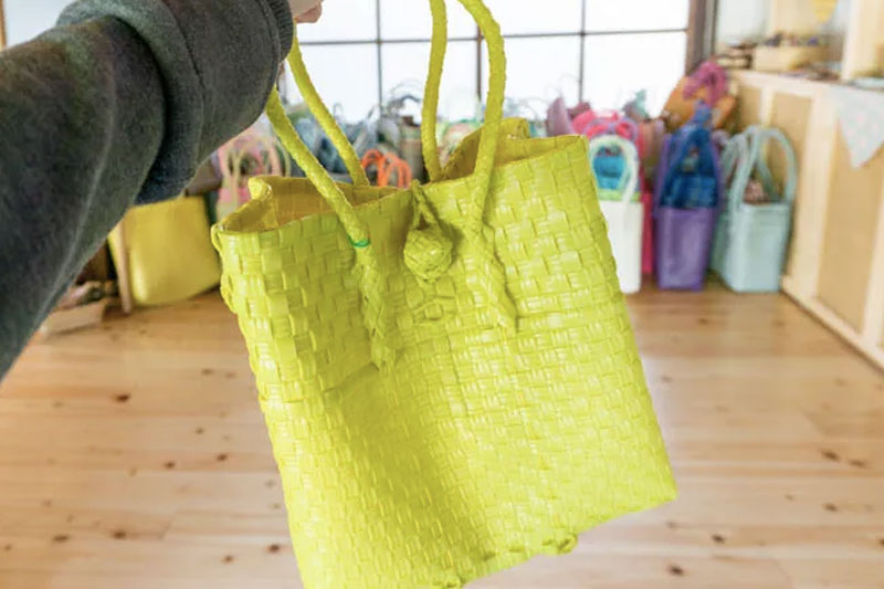 2021年4月にオープンしたメケアリバッグのお店。プラスチック素材を使用し、手編みで色合いがキュート♪汚れたら水拭きもOK。バッグ以外の取り扱いもあり。