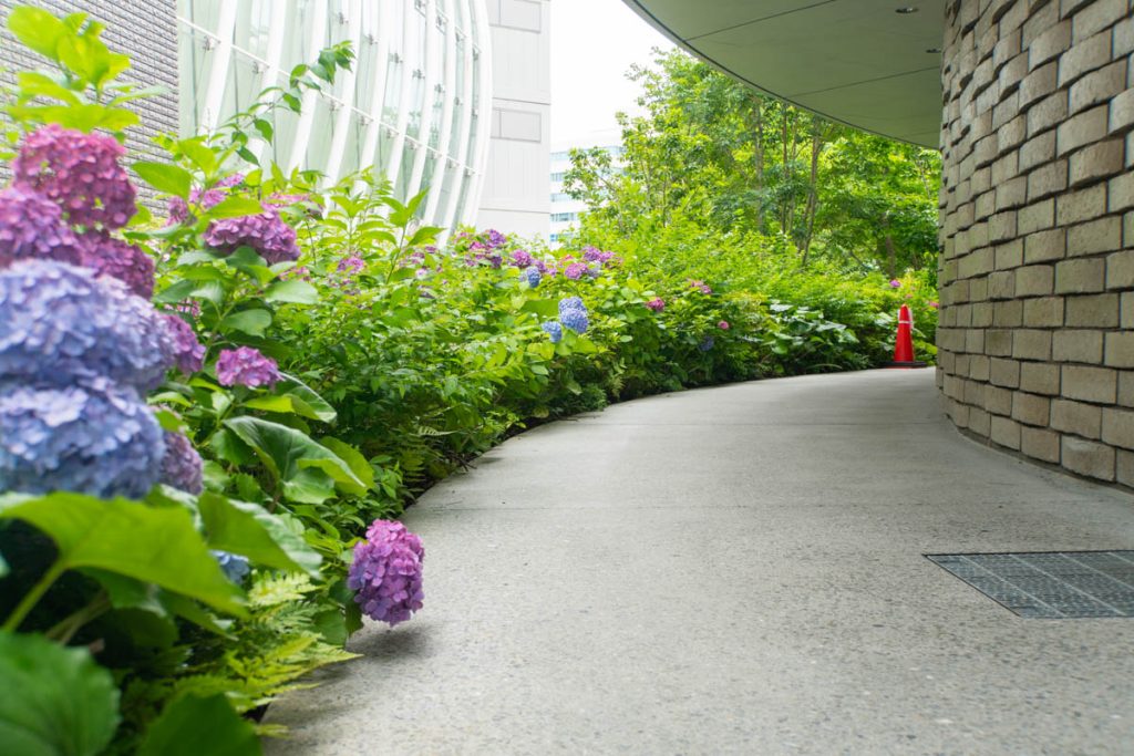紫陽花がたくさんあるのは、総合文化芸樹センターの正面入口近く。