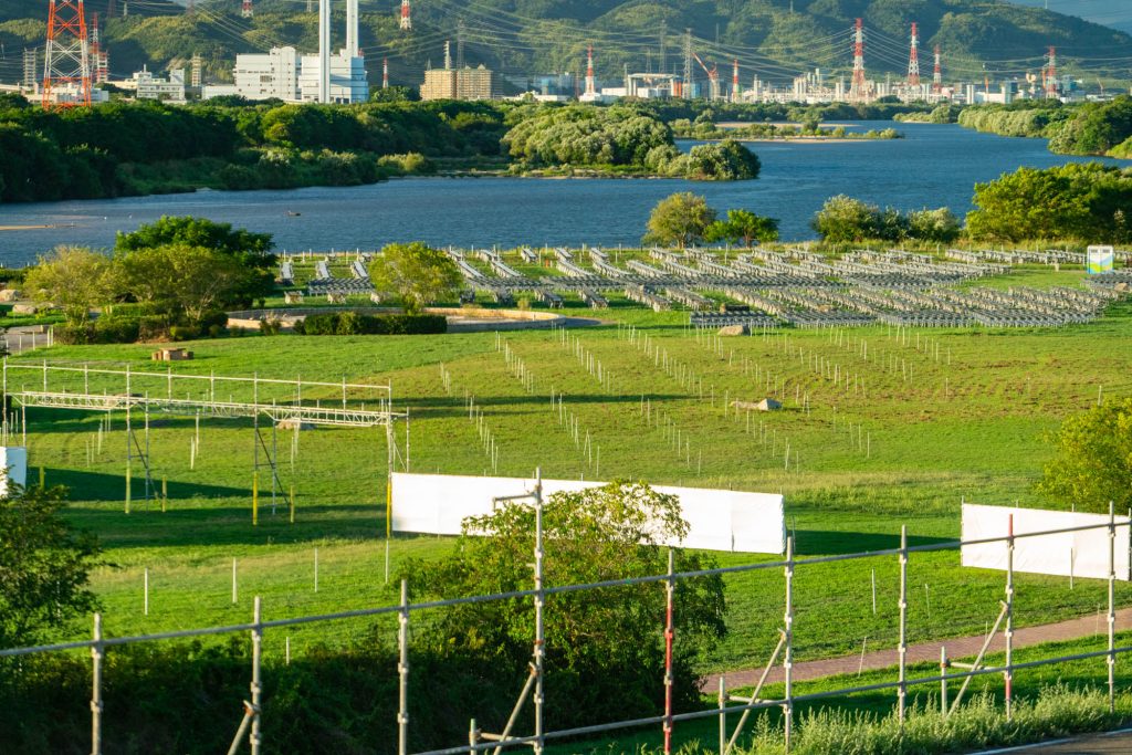 淀川河川公園枚方地区で開催の「第3回 水都くらわんか花火大会」の準備が進んでいます。