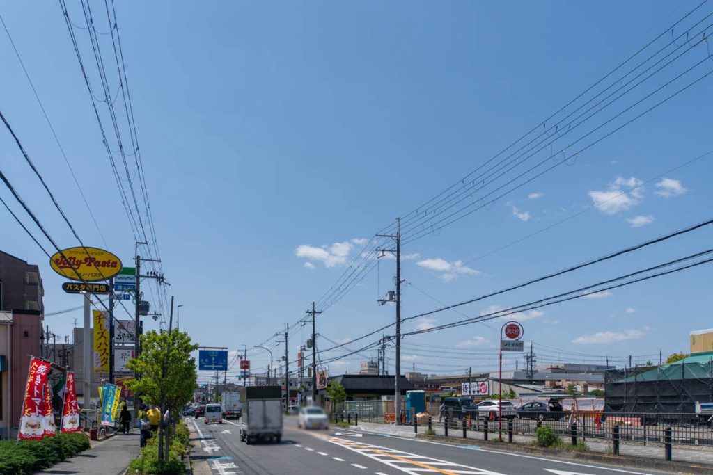 こっちにいくと交差点「西招提町」があり、そのまま進むと業務スーパーなどがあります。