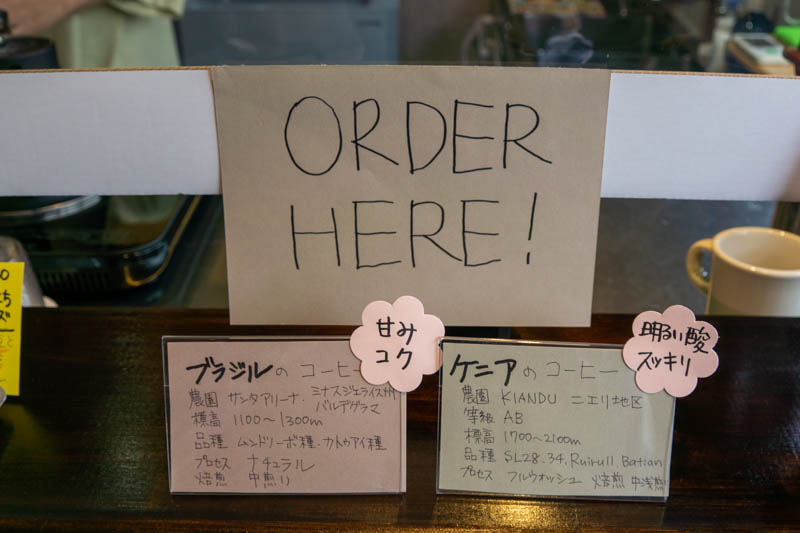 コーヒ豆はブラジルとケニアの2種類から選べるとのこと。
