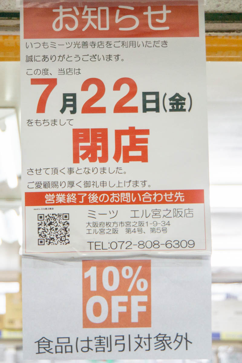 光善寺駅近くにある「100円ショップ ミーツ光善寺店」など駅近くにある複数店舗が閉店するようです。
