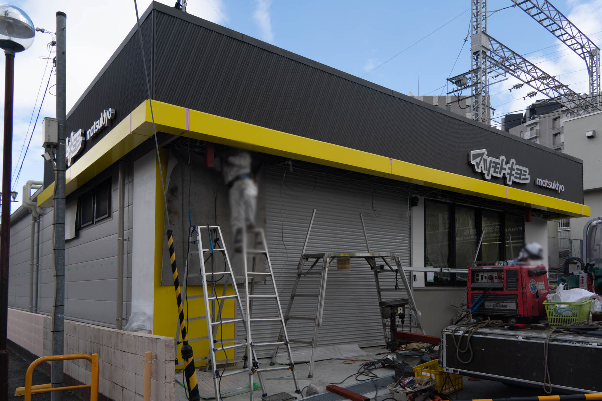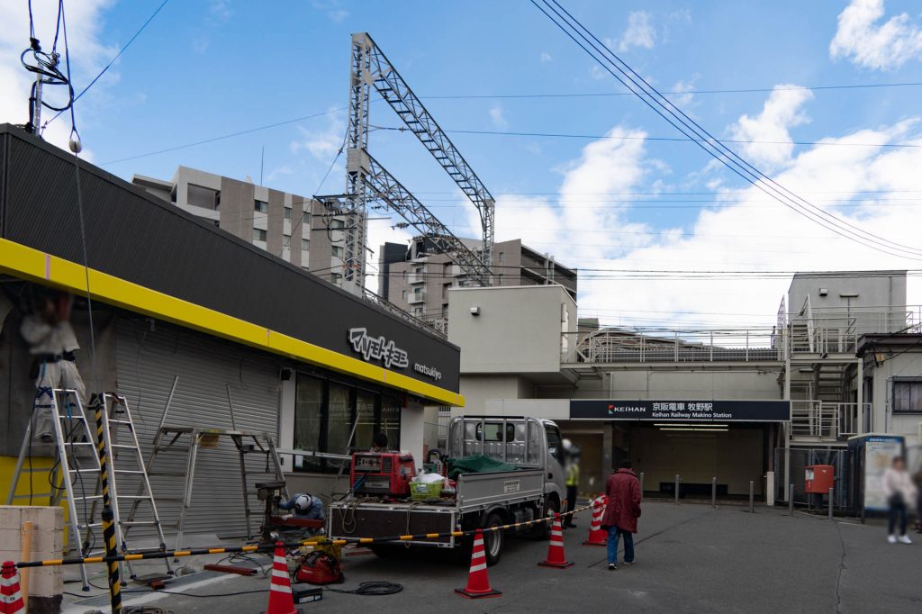 牧野駅前につくっている「マツモトキヨシ 牧野駅前店」の外観がほぼできています。