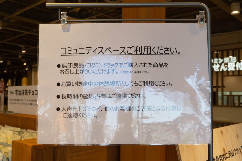ここでは「無印良品」や「コクミンドラッグ」で購入したものを食べることもできるそうです。