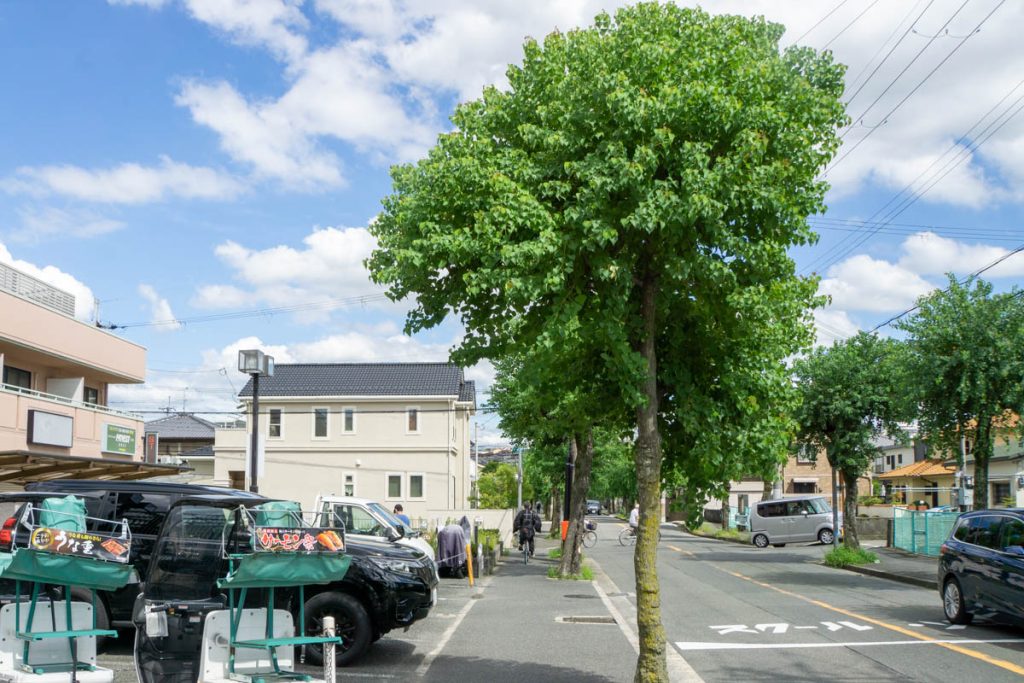 反対方向に行くと府道18号線沿いに合流。近くにダイソーなどがあります。