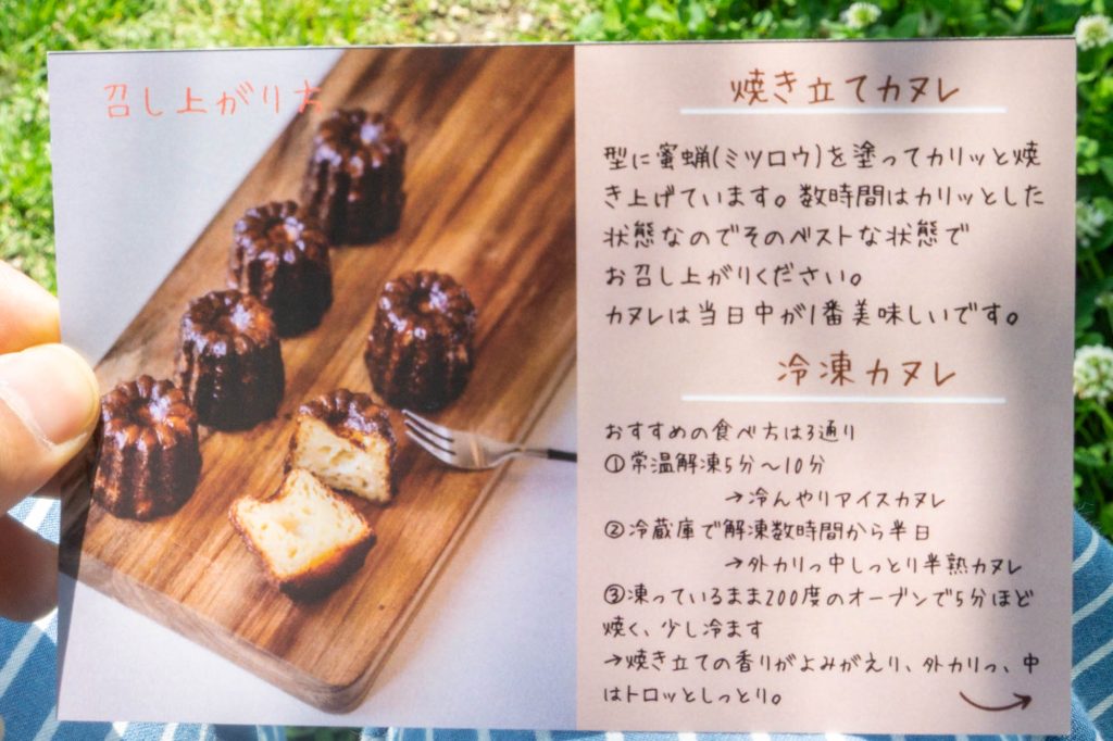 ちなみに、焼き立てカヌレは完全予約制(4個以上から)なので、食べたい方は上記公式LINEから注文をどうぞ。