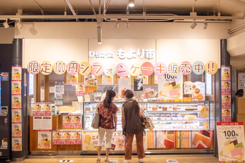 枚方市駅構内に100円シフォンケーキ推しのスイーツ店「パティスリーラ・ヴィエイユ」、樟葉駅にわらび餅のお店「わらび屋本舗」の期間限定店ができています。