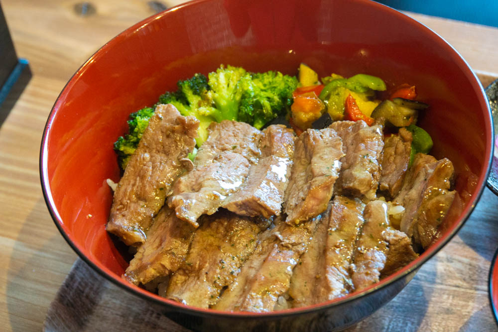 今回のリニューアルでメニューも一新し、サーロインステーキ丼などステーキ系を提供し始めたそうです。